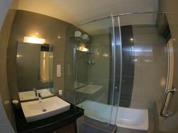 Потек кондиционер, вода капала на розетки. В 22:00 нам не смогли починить, но предложили поменять номер на другой. Так как это была крайняя ночь, мы отказались. Очень дорогое меню в ресторане отеля, можно найти заведение дешевле.