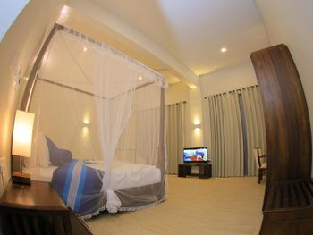 Номер очень грязный. На мягкой мебели плесень. Занавески в пятнах, как-будто о них вытирали руки. Химчистки там видимо никогда не было. Из кондиционера пахнет тухлятиной. В номере бегают толпами муравьи, пауки и прочая живность. Полотенца меняли три раза, и ВСЕ грязные с пятнами! Было максимально неприятно. Брезгливым точно тут не место. Завтрак каждый день один и тот же. Яйца, тосты, сырок, джем, чай, кофе, сок или фрукты. Все. Ценник в кафе просто необъяснимый! Коктейль стоит 1500, в соседнем на пляже 500! На балконе два кресла. Столика нет! Пришлось самим поставить стол из номера. Вай фай работал через раз. Очень плохо!