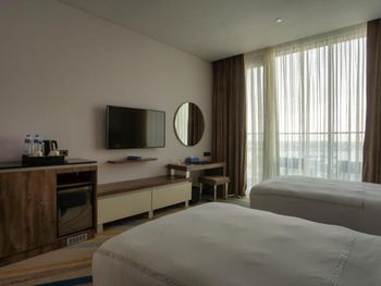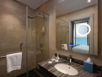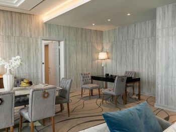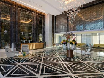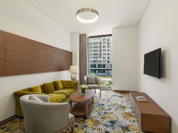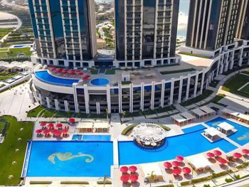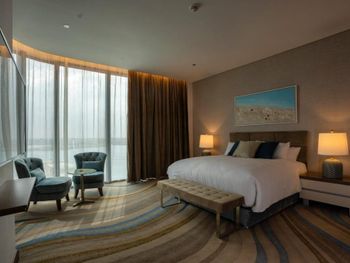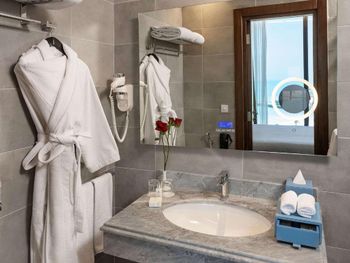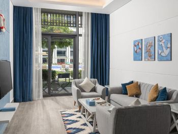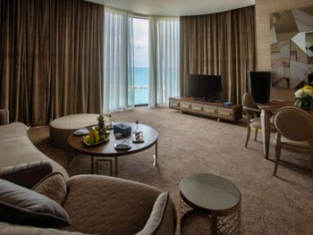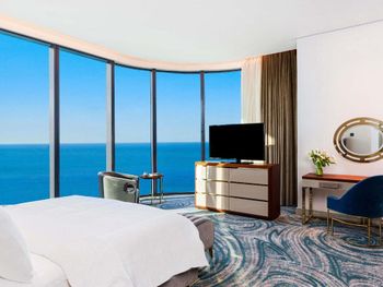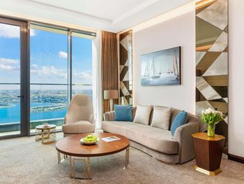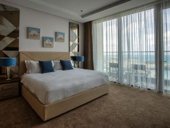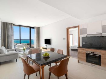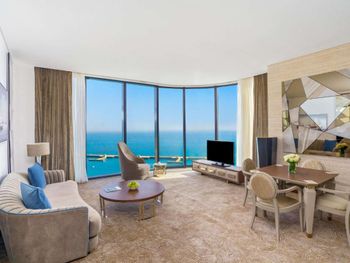Красивое здание, комфортный двухкомнатный совремнный номер Люкс с потрясающим видом на Марину и море с 19го этажа. Невероятное море с возможным заходом в любую погоду, наличие бассейна с подогревом, спа и спортзала. Развитая инфраструктура рядом с отелем. Расположение а-ля карт ресторанов на пирсе. Быстрое заселение