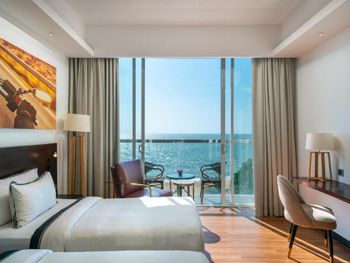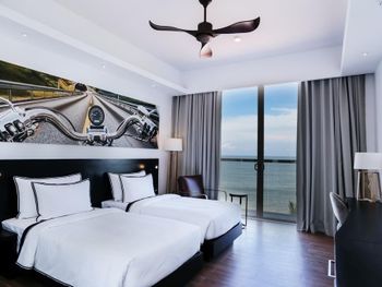 красивый, новый, чистый отель, роскошный вид из ресторана и номеров. первая линия, но в мае был сероватый океан, мы не стали купаться, но можно. на крыше бассейн, вечером диджей и атмосфера супер, прям оч современное, европейское место. видимо владелец байкер, в отеле история мотостроительства всех культовых мотоциклов, на каждом этаже, интересные интерьерные решения