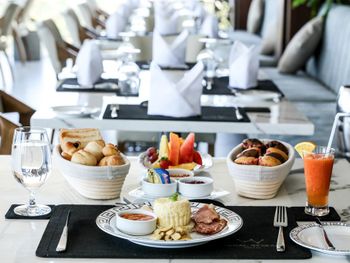 Прилетели вечером , решили поужинать в отеле, ни куда не ходить, к еде претензий нет, большой выбор вина.