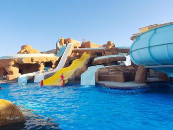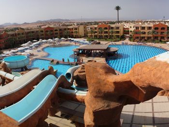 К услугам гостей аквапарк с 11 горками, где могут проводить время как взрослые, так и дети.