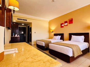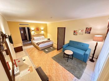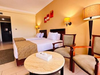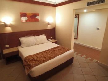 Минусы: -состояние номера.Будьте готовы к тому что постоянно что то не будет работать(двери,горячая вода..)В начале при чек ине на ресепшене вам предложат номер получше если вы дадите портье «презент».Не тратьтесь,номер у вас будет такой же как вы и заказывали.Все просто хотят денег.Номер «стандарт» находиться возле картинга..будьте готовы к постоянному шуму и запаху бензина.Розетки 3 на весь номер и находятся далеко от кровати(если кого то это интересует)