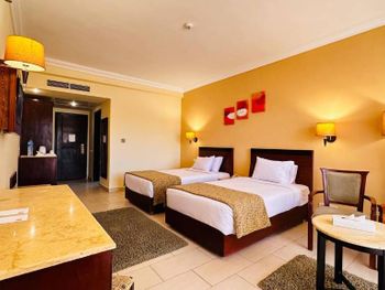 Начну с ресепшена, хочу отметить мистера Мино заселили сразу в шикарный номер с видом море. В номере есть все необходимое, уборка каждый день. Множество ресторанов и баров на любой вкус. Голодными точно не останетесь. Территория огромная с большим количеством бассейнов и баров. По вечерам в гроте проходит шоу анимации и дискотека, есть картинг. Море не глубокое и нет кораллов( обувь можно не брать) Большое спасибо мистеру Хамза и Эхаб за квалифицированные подбор персонала. На лобби баре официанту Питеру и так можно перечислять бесконечно. Я остался доволен отдыхом. Ждите меня ещё)))