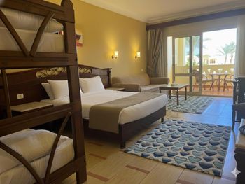 Всё супер кроме........ кроме еды и отношения персонала. Кормят ну прям очень скромно, экономят просто на всем. Разнообразия блюд минимальное, фруктов практически нет, разбирают в первые 20 минут и больше не выносят. Салаты на завтраке все вчерашние, просто ужас! На завтрак взять просто нечего. Выпечка вся однообразная и честно никакая!!! В баре на пляже постоянно нет картошки, как ни подойдёшь, ждёшь по 20мин, вечная проблема с соусами, на 5день только поругавшись, появились 3 маленькие бутылочки с соусами, которые быстро закончились и новых опять 2 дн ждали. Напитки тоже постоянно заканчиваются. Мало того, бармен Ахмед доливает в бутылки с алкоголем воды и со спокойной совестью льёт эту бурду людям. В лобби баре ситуация с напитками чуть лучше, но..... ни молока для коктейля, ни лайма/лимона никогда там нет. Обещанная выпечка вечером тоже отсутствует. Разочарование одним словом((((((( Персонал в отеле никто не гоняет, ребята расслаблены до нельзя!