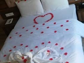 За неделю проживания в номере ни разу не убрали . Отель старый , грязный , покрывала порванные . Некоторые гости отеля нам рассказали что у них в номере клопы . Плитка потресканая , стены и двери тонкие и можно слышать как общаются люди в соседнем номере .