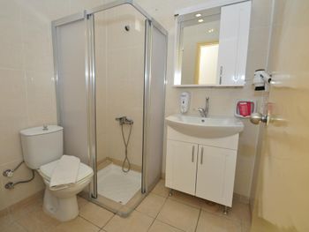 В номере протекал душ, сливное отверстие вообще не сливает. С душевой кабины вытекала вся вода на пол в туалете. В течение дня вода так и оставалась на полу, даже в тапочках ходить было невозможно.