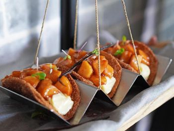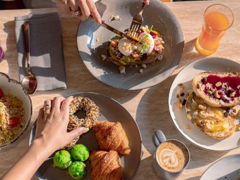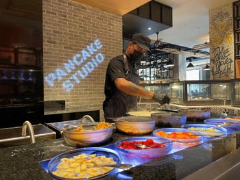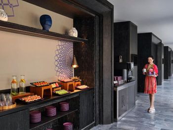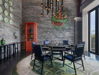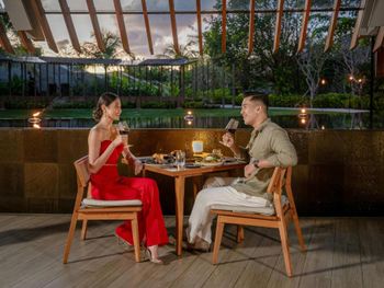 Для гостей сервируется завтрак «шведский стол», американский завтрак или азиатский завтрак. При Renaissance Bali Nusa Dua Resort работает ресторан, где подают блюда кантонской кухни, блюда китайской кухни и морепродукты. По запросу для гостей приготовят вегетарианские и веганские блюда.