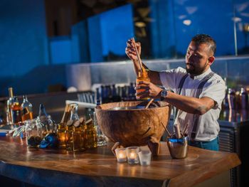 Четыре раза в неделю на закате в курортном спа-отеле Renaissance проводятся вечеринки, на которых гостей угощают фирменными напитками, приготовленными местными барменами-миксологами. Постояльцы также могут провести целый день в пляжном клубе Roosterfish на пляже Пандава, который расположен всего в 15 минутах езды на трансферном автобусе отеля.
