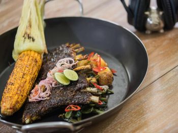По утрам сервируется завтрак «шведский стол». В курортном спа-отеле Renaissance Bali Uluwatu работает ресторан азиатской кухни.