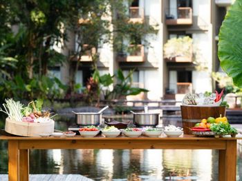 Воняют водоемы на территории отеля.Много номеров выходят прямо на них.в том числе и ресторан для завтрака.Поэтому завтракали всегда внутри.Еда немного специфична.Все в азиатском стиле,острое.В океане при штиле жжется планктон.Очень пахнет хлоркой вода в кране и душе.