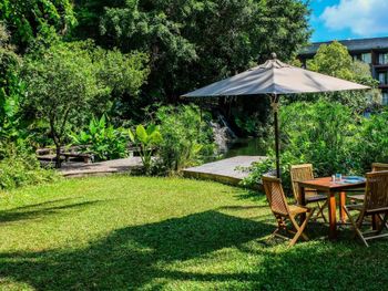 Номер, красивая территория. Просыпаешься под пение птиц, кругом варанчики, белочки и тараканчики.Приветливый персонал,который всегда предлагает помощь.Красивый пляж(очень красивый), но в мае купаться опасно, так как обратное течение, большая глубина и волны.На пляже лежаков нет, так как это запрещено.Половина отеля находится на реставрации, но это не мешает проживанию. Детский бассейн прохладный местами.Взрослый теплый.Около бассейна угощают фруктами и водой с лимоном.На берегу моря делают массаж. До ближайшей улицы с магазинами каждые пол часа ходит бесплатный тук-тук. Аэропорт рядом, в 10 минутах езды.