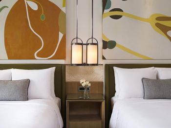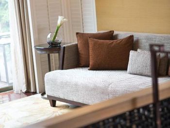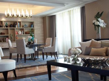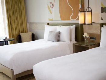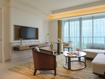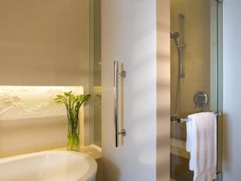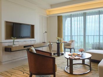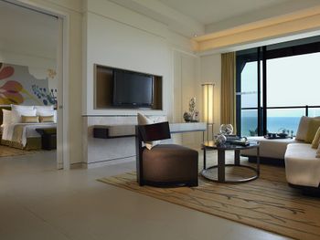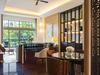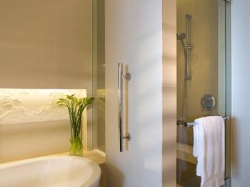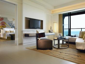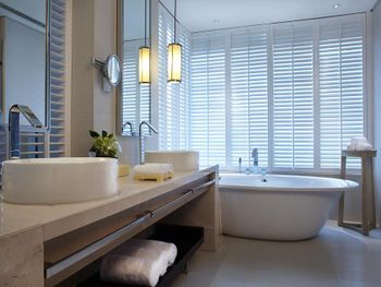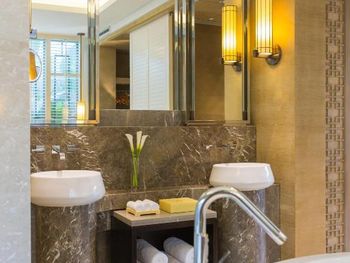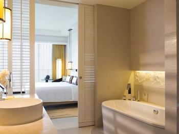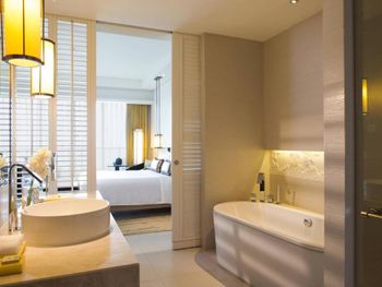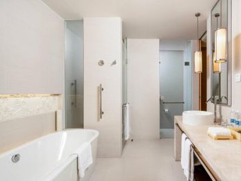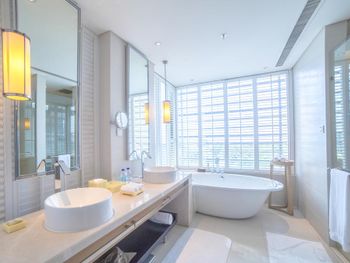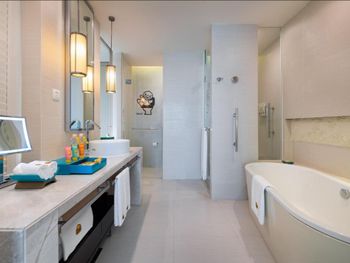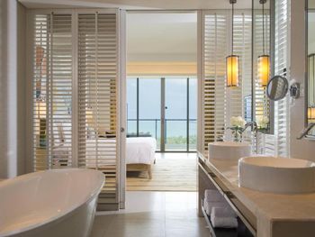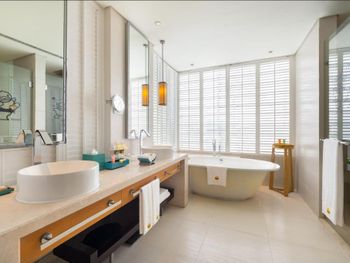В роскошных номерах курортного спа-отеля Renaissance Sanya есть собственная ванная комната с отдельной ванной и тропическим душем. В числе других удобств — гладильные принадлежности и принадлежности для чая/кофе.