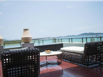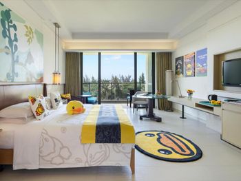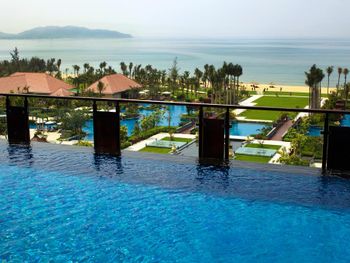 Отдыхала с сыном 10 лет. Отель полностью соответствует фото и описанию, чистые номера, великолепная большая очень зеленая ухоженная территория. Кажется что мало отдыхающих, количество видишь только на завтраке. В номере все необходимое: чайник и чашки (каждый день добавляют кофе, чай, сухое молоко и сахар), утюг и гладильная доска, набор для чистки обуви, полотенца для любых целей, халаты, банные тапочки и резиновые (весьма комфортные и прочные) фирменные шлепанцы, шампунь и проч., з/щетки, холодильник. Много бассейнов (глубина 1,2 м, кроме детских). В день в двухместный номер приносят 4 бутылки воды. Мы были в делюкс номере с видом на океан на 5 этаже (при этом 4-го этажа в гостинице нет, по факту это 4 этаж), море было видно лишь кусочек, но вид шикарный на пальмы и территорию. Начиная с 6го этажа отлично видно море. Потом взяли еще на сутки номер "Лагуна" с собственным выходом в бассейн. Точнее гостиница нам его апгрейдила бесплатно, оплачивали мы самый обычный номер. Очень удобно, особенно с детьми, выход из номера сразу в немноголюдный бассейн. Завтрак шведский стол - разнообразно и вкусно. Обед/ужин в одном из двух ресторанов на территории. Один более китайский, нам не привычна такая еда + до заказа не совсем понимаешь, что тебе принесут. Второй (Star Fish) предлагает огромные порции европейской еды (на выбор свиные ребра/говядина/курица/морепродукты и разнообразный гарнир). Все очень вкусно. Выход в море с территории гостиницы, пляж чистый, есть лежаки. Всегда висит предупреждение и флажки о запрете купания. По мнению китайцев, сильные волны и обратное течение, но для нас это обычные небольшие волны (но они есть всегда). Купались с 7 утра, некомфортные волны были только 1 день из 8, в остальное время очень теплое и приветливое море. На пляже немноголюдно, китайцы вообще только ноги мочат. Берег пологий, детям удобно. Персонал не знает английского (тем более русского) от слова совсем: запасайтесь интернетом и переводчиком.