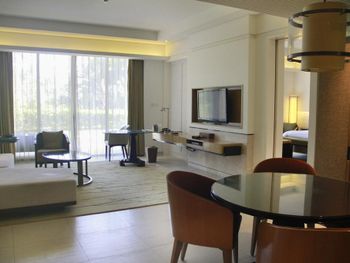 Очень далеко от Саньи и бухты Дадунхай, рядом нет инфраструктуры и трудно добираться (шатл ходит редко), но все это компенсируется самим отелем, который вообще можно не покидать, настолько он хорош. На территории отеля все очень дорого (спа и еда).