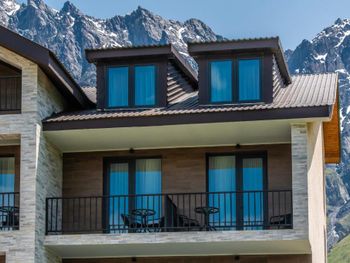 Мы в восторге от вида из номера 😍 все номера с видом на Казбек. Прекрасный завтрак, разнообразный, продукты качественные. Приветливый персонал. Близко прогулочные маршруты и кафе.
