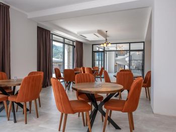 Наверно ввиду того, что отель недавно открылся и все еще впереди, не хватило уюта, элементов декора в общих зонах, стульчики на террасе, огоньки, столики, картины. В общем все, что создает атмосферу. Нам было не принципиально, так как уже вторые сутки находились в поселке, но обычная практика в отелях при наличии свободных номеров заселить на пару часов раньше. С нас попросили доплату 50%. Если бы приехали рано утром, то без проблем бы доплатили.
