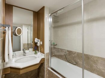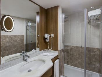 Темновато в ванной комнате из-за того что она черная и слабое освещение, не совсем удобно делать макияж, так же кондиционер не всегда работал и было душновато