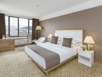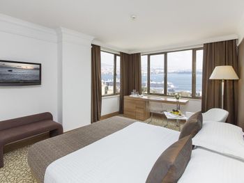 Вид из номера на 6 этаже на Босфор прекрасный, классный тропический душ, кофемашина в номере, велкам фрукты, приятный персонал на ресепшне