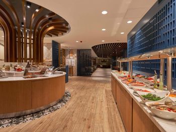 The hotel serves a rich open buffet breakfast every day.