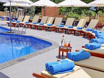 Данный отель не соответствует 4 звездам, он находится между 2 и 3 звездами. В номере мебель грязная, с пятнами, полы во время уборки в комнатах не моют, их подметают, в ванной комнате моют. Сама ванна стоит далеко от стенки и соответственно есть зазор через который вода проливается на пол. Шторы очень старые и местами порваны. В общих коридорах на этажах очень много волос, видно их выметают из комнат и оставляют там. И это очень не приятное ощущение идти по такому коридору. Мы говорили персоналу на ресепшен, но к сожалению ничего не изменилось. Полотенца белые, постельное белье уже серое, но без пятен. На завтраки за 24 дня нашего пребывания ни разу не было морепродуктов, молока и сливочного масла, много зелени, фруктов. Мясо очень мало и то оно идет как дополнительный ингредиент к блюду, например овощи тушеные с курицей.