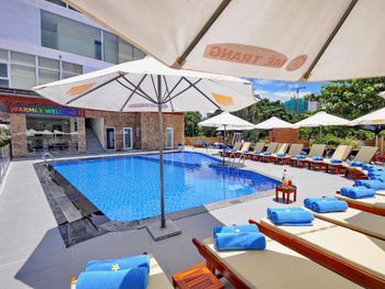 Хороший недорогой отель с очень неплохими завтраками за свою стоимость. К номерам есть маленькие вопросики, но такие же вопросики у меня были к номерам Редиссон Блу в Шереметьево(а там совсем другой класс отеля по цене и позиционированию) Бассейн хорош, достаточно большой и глубокий, есть минимаркет со всякими вещичками и алкоголем(можно пить пиво не отходя от бассейна), а так же есть круглосуточный магазин Hello в 100 метрах от отеля. До пляжа метров 350. Есть парковка для байков. Вообщем для бюджетного отдыха - шикарно.