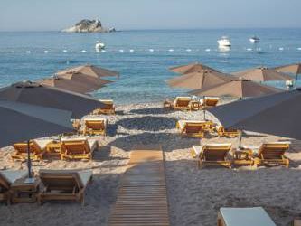 Современный отель с отличным дизайном. Своим пляжем и рестораном с отличной кухней. Есть возможность заказывать напитки и еду сразу на пляж к шизлонгам.