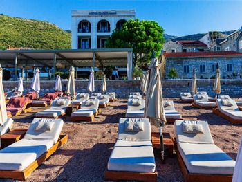 В связи с новыми законами в Черногории, невозможно лежать даже на платном пляже, приходят очень агрессивные местные и ложатся Рядом с вашим лежаком(( например у меня, пока я плавала выбросили далеко в сторону мои шлёпанцы и легли на своём дырявом полотенце на это место. Секьюрити сделать ни чего не могут, так как Новый закон , говорит о том, что местным можно все! Поэтому мы уезжали на Королевский пляж, там красиво и спокойно. И по непонятной для меня причине, там секьюрити могут гонять местных и не давать бесплатно даже шагнуть на пляж)! Почему в Риве - это не могут, остаётся загадкой.
