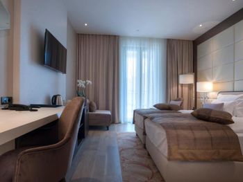 Отель очень понравился всей нашей семье. Уютное, атмосферное место . Уезжать никому не хотелось ))) Из плюсов :прекрасное расположение , первая линия, свой пляж, подземный и наземный паркинг, и хорошая звукоизоляция. Весь персонал очень вежливый и приветливый. Почти всегда питались в ресторане при отеле - есть из чего выбрать и вкусно. В ресторане официанты говорят и на русском , и на английском . Легко найти общий язык при выборе блюд. Хотим поблагодарить официанта Милоша за прекрасное обслуживание . И отдельная благодарность управляющему Петру за помощь во все вопросах и тёплый приём . Планируем вернуться сюда снова и смело можем рекомендовать это место .