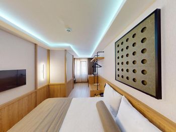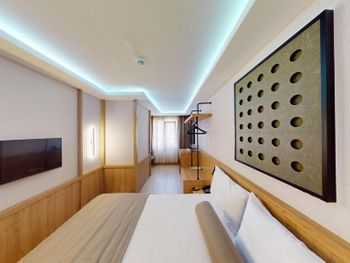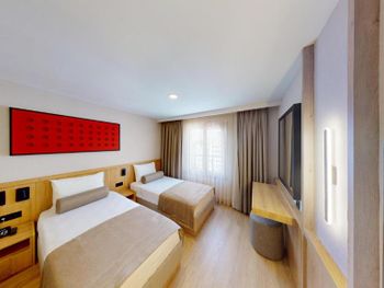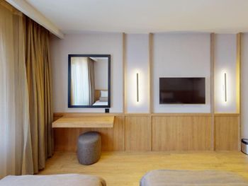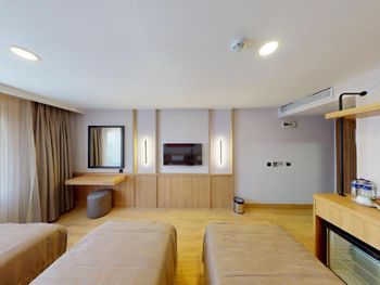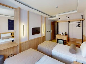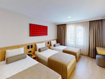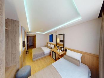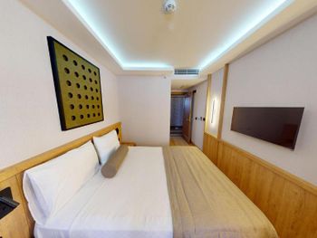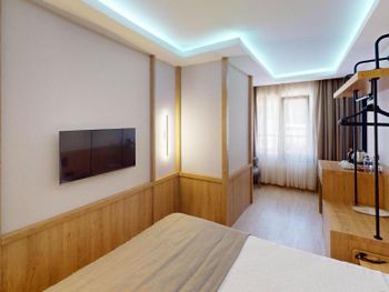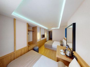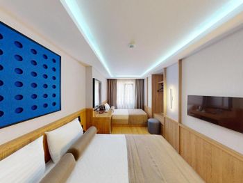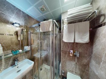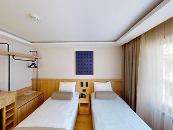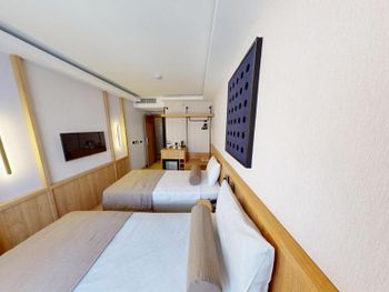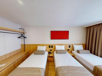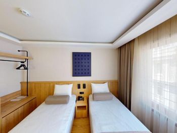 Комната нормальном ремонтом +, комната оказалась намного меньше заявленного — бронировал 18 м², а дали максимум 12 м². Ванная микроскопическая, раковина такая маленькая, что зубы толком не почистить. Завтрак — издевательство: выбор минимальный, еда быстро заканчивается, даже варёные яйца приходилось несколько раз выпрашивать. Кофе — отвратительный. Персонал на кухне всегда недовольный, как будто еду готовят за свой счёт.