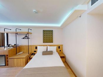 Номер маловат даже для одного, а двоим развернуться вообще негде. Кровать средних размеров: для двоих, наверно, будет тесная, но для одного - в самый раз. Полотенца были с пятнами, нужно бы отстирать / заменить. На завтрак я бы добавил несколько видов пирожных.