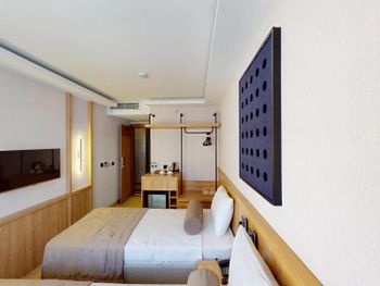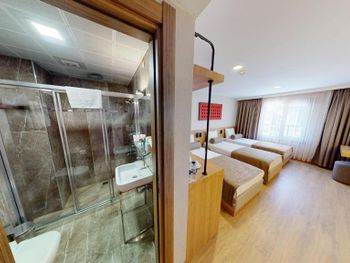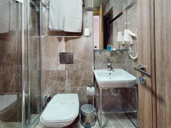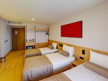 Номер очень маленький, для троих узковато, а ванная с туалетом это просто очень узко. Реально маленький номер. В остальном все понравилось