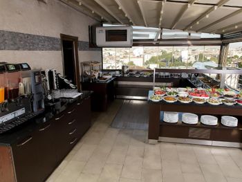 Расположение - прекрасное. Рядом и метро, и трамвай. Район очень шумный, оживленный. Есть кафе и магазины, но, естественно, всё довольно дорого, потому что центр. Зато до всех достопримечательностей ходили пешком. Завтрак на террасе с красивым видом - очень приятный бонус. На завтрак выбор еды достойный: пара салатов, зелень, яйца, омлет, выпечка, сыры, джемы, масло, оливки, овощи, сосиски и пр. Персонал приветливый, быстро реагирует на просьбы, говорят по-английски.