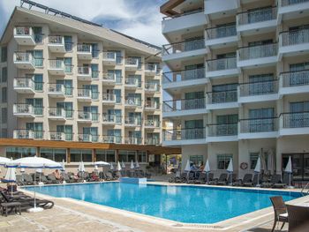 Отель на 3 звезды в натяжку. А при цене почти 100 баксов в сутки в ценово-качественном диапазоне ставлю 0 из 10. Расположение не самое лучшее. Пляж хоть и хвалят, но по другую сторону мыса ближе к центру лучше, меньше волн и рядом магазины. С детьми/стариками тут вообще делать нечего. Молодёжи тоже - диско с другой стороны мыса, такси !$$. Вид на море в номере за доплату - получаете 30% горизонта, без козырька от солнца, 40 балконов видят качество ваших труселей. Это "частичный вид на море"! Если платить не в евро, переводят евро в лиры по грабительскому курсу, а потом в вашу валюту по грабительскому курсу. С картой или налом - не важно. Заплатите на 10-12% больше. Стол-полка, малюсенький, как и урны, даже салфеток простых нет, да ничего нет. В ванной только и исключительно жидкое мыло в диспенсере. Выдаёт каплю со спиченую головку, 20 нажатий - помыть руку. Давление и температура воды - как молодой жеребец. А если сливают воду в унитазе соседи - ожог обеспечен. Постоянно скачет! Неужели трудно купить смесители с термолегулятором за 50$ при цене суток почти 100? Ни шампуня, ничего сверх жидкого мыла. Какие там пасты/щётки, всё покупай по грабительским ценам в ближайших магазинчиках, пока не нашёл далеко расположенные супермаркеты. Полотенца часто с чёрными или рыжими пятнами, серого цвета. Да почти всегда. Уборка то средняя, то плохая, то ужасная. Один раз оставили на письменном столе (полочке у зеркала) пакет с мусором из туалета!!! Не, не из мести какой-то, тупо забыли убрать. Мусор из туалета на столе, прекрасно! И ещё немало моментов для четырёх звёзд, включая смену постельного белья раз в неделю. Сейф платный! 2$ в день! Впервые такое встречаю, ведь обещали сейф - а тут вот. Опять же ещё из обещанного на букинге нет: биде, паркета, шумоизоляции, любых вещей для глажки и утюга, чайника/чая не предусмотрено вообще.