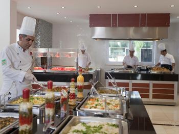 В отеле Riviera сервируется богатый «шведский стол» с блюдами средиземноморской и интернациональной кухни. В элегантном лобби-баре с теплой атмосферой предлагается широкий ассортимент местных и импортных напитков.