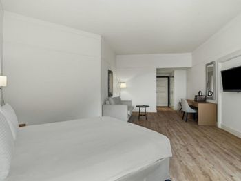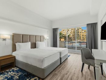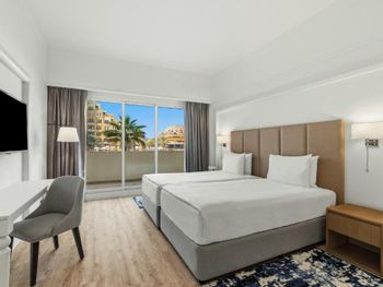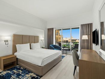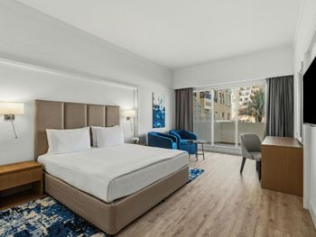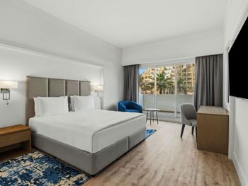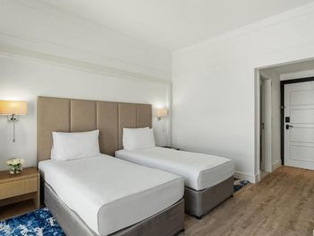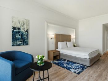 Отель с "остатками былой роскоши". Жили в номере категории Делюкс с видом на сад. Многие номера этой категории без балкона и с видом на дорогу и/или соседнее офисное здание с большой парковкой. Очень шумно от машин и паркующихся автобусов и днем, и ночью. "Уставшие" номера: неопрятно (если не сказать, что грязно), ковровое покрытие на полу плохо почищено даже от обычного мусора, и уж тем более не подвергалось химчистке наверное никогда, в номере неприятный запах (устойчиво пахло так, как-будто только что кого-то стошнило), предметы мебели и интерьера обшарпаны, поцарапаны, требуют обновления. Мест для хранения немного. Шкаф есть, но относительно не большой, вешалок мало. При достаточно просторном санузле мало крючков, чтобы повесить одежду, а ведь еще одежду нужно сушить. А сушилки для одежды нет (для номера без балкона это особенно неудобно). Мало свободных розеток. Там, где зеркало, не было розетки. То есть, если вы хотите воспользоваться каким-либо своим прибором для укладки волос перед зеркалом, это затруднительно. Напор воды - слабый. Если густые волосы, промыть голову таким напором нельзя. Номера требуют хорошей генеральной уборки, а еще лучше косметического ремонта и замены предметов интерьера. Возможно (надеюсь) в номерах более высокой категории лучше. О персонале: уборка номеров плохая, меняют полотенца и постельное, и все. Номера не пылесосят, либо пылесосят, но у них плохие пылесосы, которые оставляют весь мусор на полу. Пыль не протирают. В общем ресторане - еды много, разная, но на вкус и цвет...., народу - толпа, нет контроля за дресс кодом, мужчины в сланцах и пляжных шортах на ужине в порядке вещей. Считаю, что отель должен устанавливать правила и контролировать их. Лежаков много, всем хватало, но все очень плотно к друг другу. Матрасы на лежаках грязные. В море грязновато, плавает мусор.