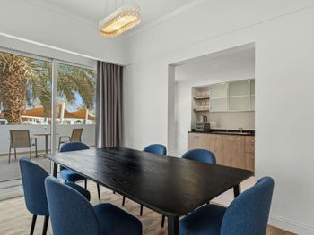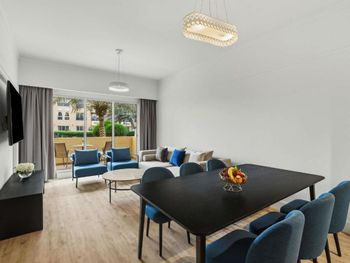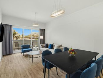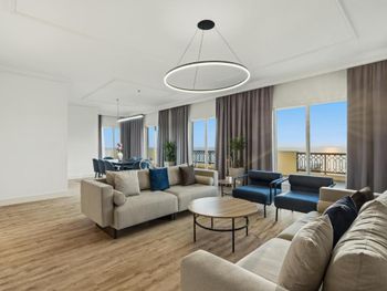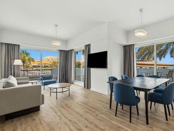 Мы жили в большом 3 bedroom suit на 8 этаже ,комната 2825, вид на море, но которое через шумную дорогу и смотрит на промзону, пустырь, вид не предрасполагает к релаксу .самый жирный минус-отсутствие горячей воды.когда хочешь принять душ,это целый квест.надо во всех комнатах открыть кран, чтоб побыстрей протекло.где то 15 минут !!!.горячая вода идет тонкой струйкой, поэтому моешься под душем кое- как , напора нет.по факту, вода просто теплая , холодную не включаешь даже.ну это просто жесть . Сантехник ничего не исправил.типа проливайте.не знаю, как в других комнатах.или, может, это в данном корпусе.он дальний от бассейна.сама территория небольшая, так как часть корпусов, видимо,под жилые апартаменты проданы. Сразу с рецепшена бассейн.вода с подогревом, чистая .небольшая детская площадка, детский клуб рикси для совсем маленьких.никаких программ толком детям нет!!непонятно, что мешает нанять хотя бы парочку аниматоров с примитивными программами.вечером народ сидит или в открытом баре около пляжа , или на открытой веранде около ресторана. обещанное по расписанию то цирк, то шоу в указанное время не проводилось. Например, в день цирка в 21.30, что поздновато для детей, выступала русская кавер группа.пели хорошо, вопросов нет, но ребенок ждал свое,расстролся.дети всех возрастов вечером толкутся на этой игровой площадке,так как других занятий нет,к сожалению