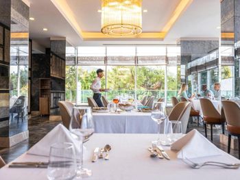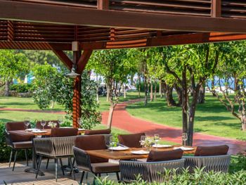 Отвратительное обслуживание в общем ресторане . Не убирают посуду пока ты точно уже не собираешься уходить , стоят весь ужин на столе стопки тарелок . Редко подходят , все забывают , проще самому пойти налить себе кофе/ воду . Столы сервируют «на отвали» , вино могут налить в бокал для воды . Все ходят с такими лицами , будто ты им должен . За неделю позавтракали на улице один раз , не допросишься , чтобы убрали стол . А общем , чувствуешь себя в столовой . Точно , не уровень Rixos