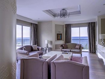 Отель низкого качества, который выставляет себя за премиальный. Началось всё с того, что когда мы приехали на личном трансфере машину не хотели пускать на территорию и нам пришлось идти пешком. Ок, мелочи, подумали мы. Но дальше было еще интереснее. Мужчина на ресепшене начал говорить, что я не могу оплатить картой потому что «мой банк выдает ошибку». На его платежной машине все было на турецком, поэтому, что конкретно он там нажимал и почему карта не срабатывала я не знаю, но знаю одно —- это была абсолютно мошенническая схема на которую мы, к сожалению, попались. Так вот, нагнав паники он заставил меня пойти к банкомату и снять наличные (банкомат за 3000 евро списал у меня комиссию 300 евро, но отелю на этот момент абсолютно все равно.) Я сразу начала пытаться высказать свое недовольство этой ситуацией потому что это явно не наша вина, что у отеля не проходит оплата, но другой «более главный» —как он себя называл, смотрел на меня с видом «и что, мы ничего делать не собираемся». Я позвонила и связалась с банком и с их стороны никаких проблем не было. Доказательство тому, что на следующий день на ресепшен сидел другой сотрудник и «О, чудо!» моя карточка отлично работала. Таким образом уже в первые пол часа пребывания в отеле я ушла в минус 300 евро по их вине, но им абсолютно все равно на это, как и букингу, который 10 дней не мог ответить мне на мое сообщение. Никакой компенсации я не получила, что считаю крайне несправедливым. После обмана и получения денег кэшем, отель не остановился и начал устраивать очередные махинации. Мы забронировали самый дорогой Deluxe номер с видом на море. Приходим в номер на 5м этаже, который нам дал ресепшен, а там номер в 2 раза меньше, каким-то углом, старый и вообще выглядит совсем не так. Вернулись на ресепшен и оказывается, что в системе что-то напутано)) со слов опять же того же человека с ресепшена. И нам дали номер, который по системе такой же, а на деле нет. Ну смешно!!