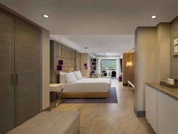 Высокая слышимость соседей. Алкоголь хороший только за доп плату. Нет возможности продлить номер при позднем выезде, но оставаться в отеле возможно и пользоваться всеми его услугами также. Плюс удобная раздевалка рядом со спорт залом, в котором можно оставить свои вещи в шкафу под замком. в раздевалке есть душ, фен, полотенца, шампунь и гель для душа.