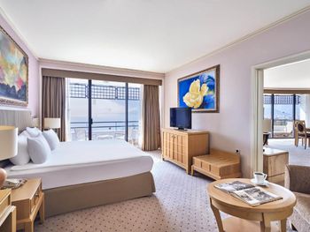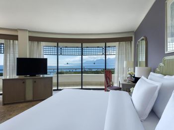 При заселении я расплатился картой, платёж ушёл из моего банка, и каким-то непонятным образом не дошёл до отеля, и они отказали в заселении. Пришлось платить наличными, просто чтобы заселиться. Деньги через несколько дней вернули на карту, но если Вы собираетесь в этот отель, запаситесь наличными как следует. Номер был забронирован с видом на море, в результате дали номер, где море можно было увидеть только хорошо перегнувшись через перила на балконе ( фото привожу)В самом номере тумбочки просто были без ручек( фото тоже есть), а при выходе из лифта на 8 этаже постоянно сильно воняло. Еда однообразная и невкусная. Чтобы попасть на пляж надо спускаться на лифте и он за неделю 3 раза не работал и приходилось полкилометра подниматься в гору пешком. На пляже отеля постоянно загорали обычные люди с пляжа и никто за этим не следил. Но самый смех был когда девушка менеджер предложила за неудобства три бесплатных ужина в платном ресторане, а потом вдруг он оказался только один, и я естественно этой возможностью не стал пользоваться.