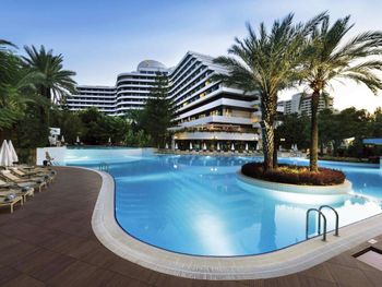 Этот 5-звездочный отель расположен в экзотических садах в парке культуры Ататюрка, рядом с пляжем Коньяалты. Из отеля открывается вид на море и горы Таурус. К услугам гостей 3 ресторана и бассейн в форме лагуны. До пляжа Коньяалты — 300 метров. Предоставляется трансфер до пляжа Аруна, нашего частного пляжа. Отель получил сертификат экологически чистого заведения за бережное отношение к окружающей среде.