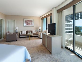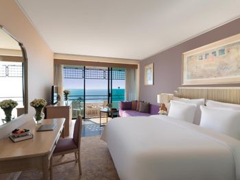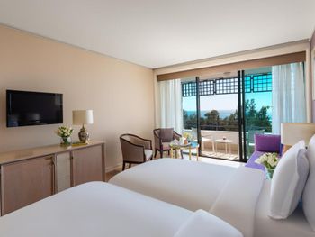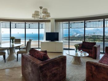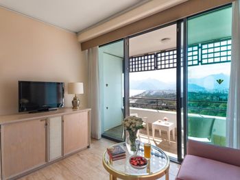 Светлые номера с собственным балконом с видом на Анталью или Средиземное море украшены роскошными тканями. В числе удобств гостиная зона с диваном и телевизор с плоским экраном и спутниковыми каналами.