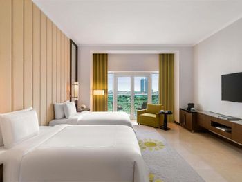 Бронировал для дочки и сестры. Моя дочь 17 лет прилетела ночью (2 часа ночи) чуть раньше, чем моя сестра, у которой задержали рейс до утра. Номер был забронирован (и предоплачен) на все предшествующие сутки целиком, но в итоге дочь отказались заселить, вызвали полицию (которая приехала и не поняла зачем её вызывали, уехала). В итоге дочь ночевала в лобби, и только утром их вдвоём заселили. Очень странное решение (заселить в номер не могут, а ночевать в лобби оставить гостя - норм; спасибо, что хоть на улицу не выгнали). В целом, персонал показал полное безразличие, хотя именно персонал определяет в первую очередь класс отеля (желание решать в т.ч. нестандартные ситуации), а не золотые люстры и красивые лестницы.