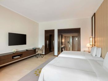 Мы 3 человека остановились в номере высшей категории Представительский люкс. Однако в нашей спальне была дверь в смежный номер, и из соседнего номера было слышно абсолютно все - как соседи готворят по телефону, общаются и т.д. Шумоизоляция полностью отсутствует. В номере есть медиахаб, но как он работает - не удалось понять. Завтрак ниже среднего для отеля такого уровня, не очень большой и какой-то бестолковый выбор, например, сделать себе зеленый салат не получится. Территория маленькая, собственный пляж маленький, расположен в крошечной бухте и поэтому там мутная вода.