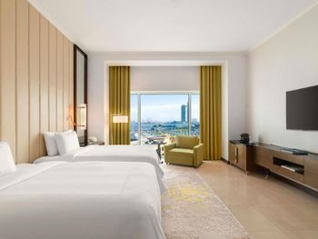 В номерах Rixos Marina Abu Dhabi установлен кондиционер, сейф и телевизор с плоским экраном. Среди прочих удобств — письменный стол, кофемашина и мини-бар, а также собственная ванная комната с биде. Помимо собственной ванной комнаты с душем и бесплатными туалетно-косметическими принадлежностями, в определенных единицах размещения в Rixos Marina Abu Dhabi из окон открывается вид на город. В распоряжении всех гостей платяной шкаф и чайник.