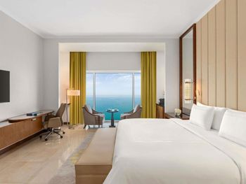 Не понравилось почти все, мы останавливались в данном отеле во второй раз, и в первый визит не был таким. После брони написала на почту отеля указав что два номера для одной семьи, чтоб нас поселили рядом или хотя бы в одном этаже, и высота этажа не был выше 15, и что у младшего день рождения оформили празднично. Все мои просьбы проигнорированы более того номера расположено в разных этажах на 32-33 этажах, в комнате 3208 сломан шкаф, и тапочек не было, полотенца и халаты жесткие. В номерах не достаточно чисто, вся посуда в пыли. И цена за питание сильно отличается от указанного в booking.Бассейн большой теплый, был грязным вся волосах, в теплый джакузи стоял не приятный запах. Завтрак стандартный, ягоды и фрукты не спелые невозможно есть, в панкейках и венских вафли слишком много муки совсем не воздушные. Развлечении и музыки было только 2 раза за 4 дня, мороженое убрали место них дают лед, детям не понравился. В марине молл через светофор есть на втором этаже итальянский ресторан VAPIANO цены приемлемые все очень вкусно порции хорошие.