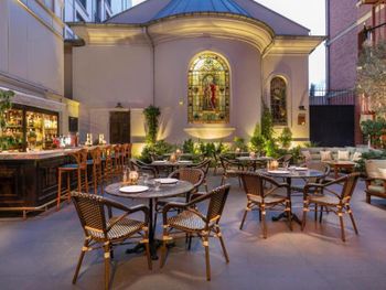 Прямо в отеле находится Старбакс, английский бар и ресторан с видом на город и открытой террасой.