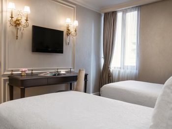 Отель старый, очень уставший, разница фото и реальности колоссальна. Очень сильные противные ароматизаторы в холле отеля . Полотенца и халаты действительно серые, завтраки невкусные, парковка только общественная, подъезд к отелю затруднён. Парная, сауна и хаммам на 3-ку. Ковра в номере не было. В день рождения никак не поздравили. В общем, своих денег не стоит совершенно, никогда не вернёмся. К тому же, соседство с переполненной туристами улицей Истикляль, для нас стало минусом