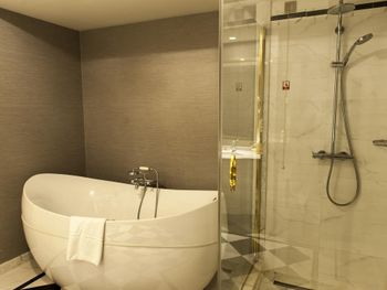 Первое впечатление от номера было не плохим, но его испортила СЛОМАННАЯ ЛЕЙКА в душевой. Там их две - одна классическая, другая тропическая, так вот - классическая была сломана, ей пользоваться было невозможно. Тропический душ, на мой взгляд, сделан не правильно - лейка слишком прижата к смесителю, ее надо было выдвинуть еще сантиметров на 15 дальше.